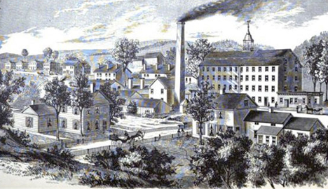 Scholfield’s inventions and the new protective tariff combined with the introduction of a new brand of sheep from Spain – merino – and the beginnings of an immigrant work force to bring all the variables together for the flourishing of industry which saw Pittsfield start the transition from an agricultural society to a center of manufacturing. Pontoosuc Woolen Mill initially employed 100 workers, a little less than half of whom were women and children. By mid-century, the mill had built a store, homes, townhouses and boarding houses for a growing workforce which would reach 500 employees by the 20th century.